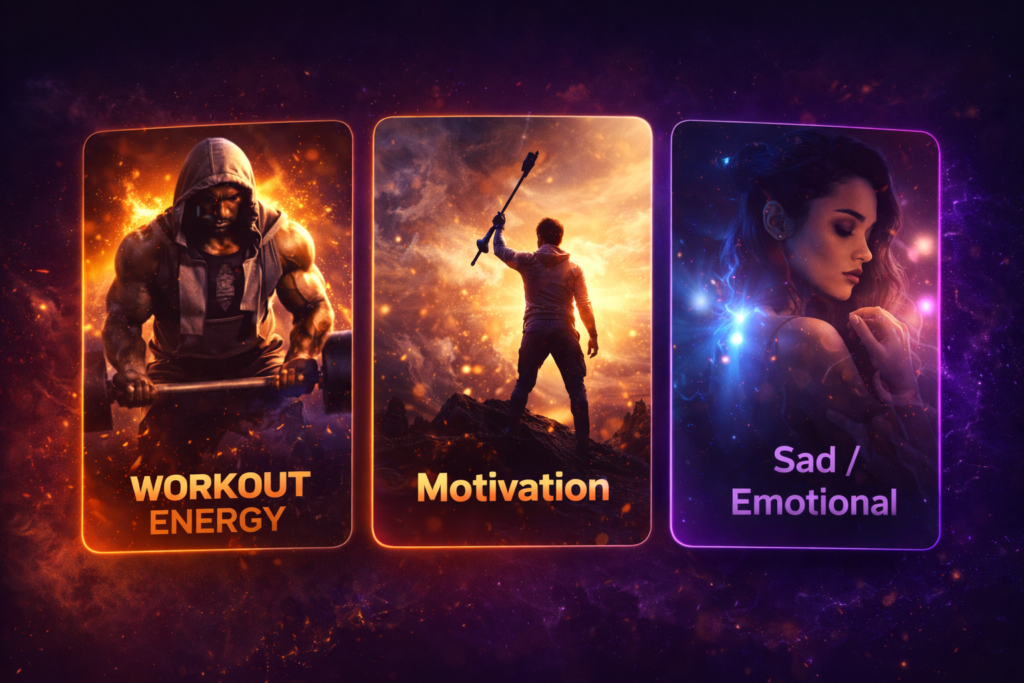 High-energy and emotional tracks for YouTube, Reels, Shorts, ads and branded content.